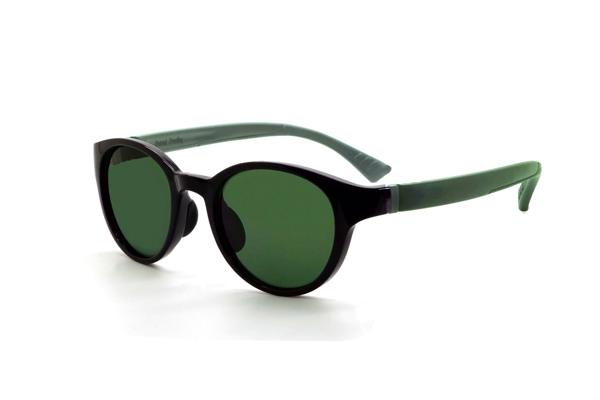 ツヤありブラックのフレームに爽やかなグリーンレンズは、男女問わずキリッとカッコよく決まります。